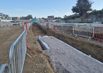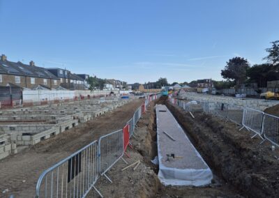 During the demolition phase there are real-time monitors in place around the site to ensure the levels of noise, vibration and dust do not exceed levels required by Richmond Council, who visit site regularly to inspect progress. In compliance with our planning permission, three dust monitors will continue to be in place from ground works to completion on site. Our contractors will be dampening down during warmer or windier weather, which is the process of spraying loose materials with water to reduce the potential spread of dust and debris from the site.